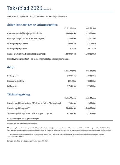 Årsafregning sker pr 31. december og opkræves 1. februar.